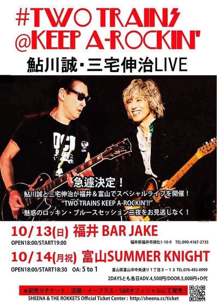 2019-08-31 10.14(月曜祝)鮎川誠さん三宅伸治さん富山市サマーナイトライブ!OAはthe 5to1です! 私の最もリスペクトするロックンロールの権化!ギターの神様!鮎川誠さんから御指名いただきました! 光栄でございます! the 5to1出撃いたします! 10.14(月祝)富山市サマーナイトにての鮎川誠さん、三宅伸治さんライブのOAをthe5to1が務めさせていただきます!チケット予約受付中!siegyago@gmail.com各snsダイレクトメールにて!
